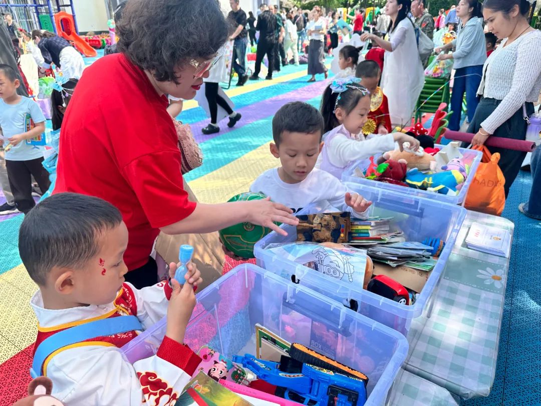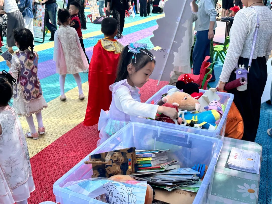 中大班亲子跳蚤市场热闹开市,“小掌柜”们精心布置摊位,图书、玩具琳琅满目。孩子们在吆喝叫卖中体验货币交易,在商品交换间领悟资源循环,爸爸妈妈们也帮助引导孩子制定价格、计算收支,让环保理念与财商智慧在欢声笑语中悄然萌芽。