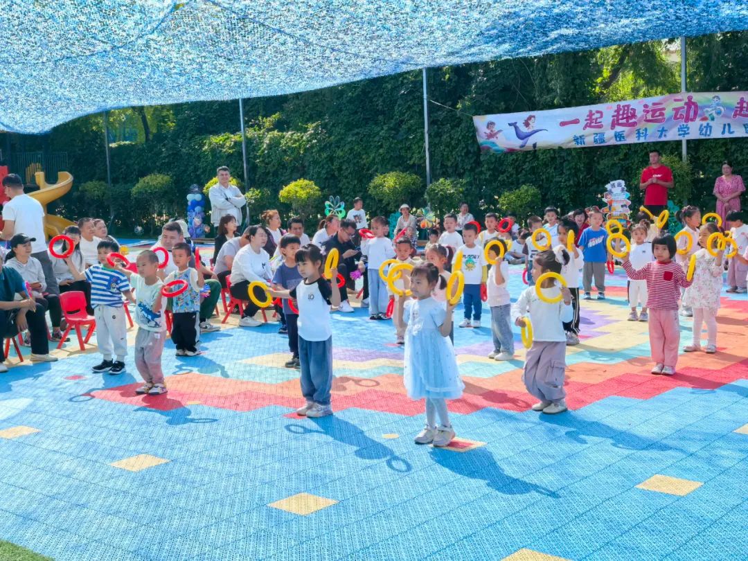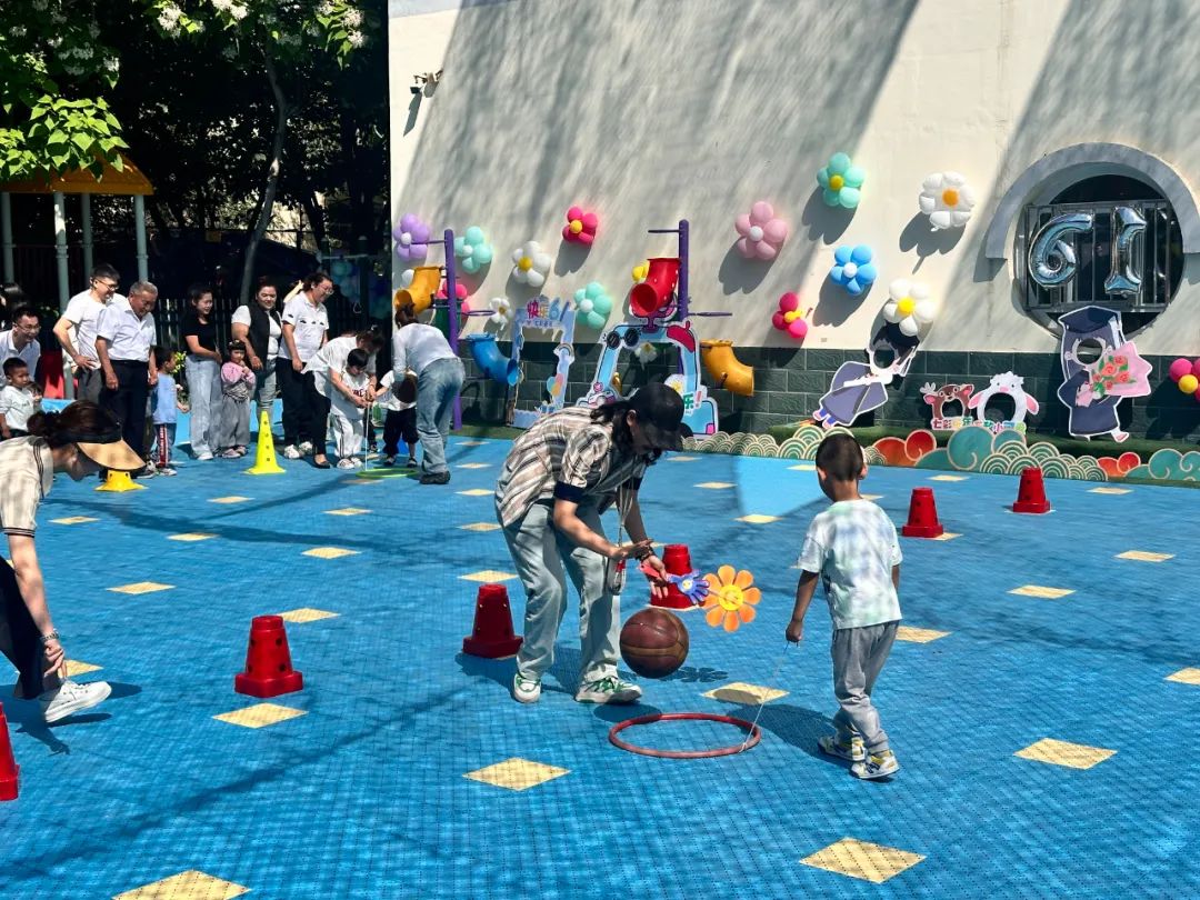 小班亲子运动会以“健康”为号角,吹响了欢乐集结令。“蚂蚁运球”“送小青蛙回家”“动力飞车”“穿越彩虹桥”等趣味项目轮番登场,父母与孩子携手闯关,汗水与笑声交织成网。运动场上的每一次击掌、每一句加油,都给孩子们的童年留下难忘的回忆。