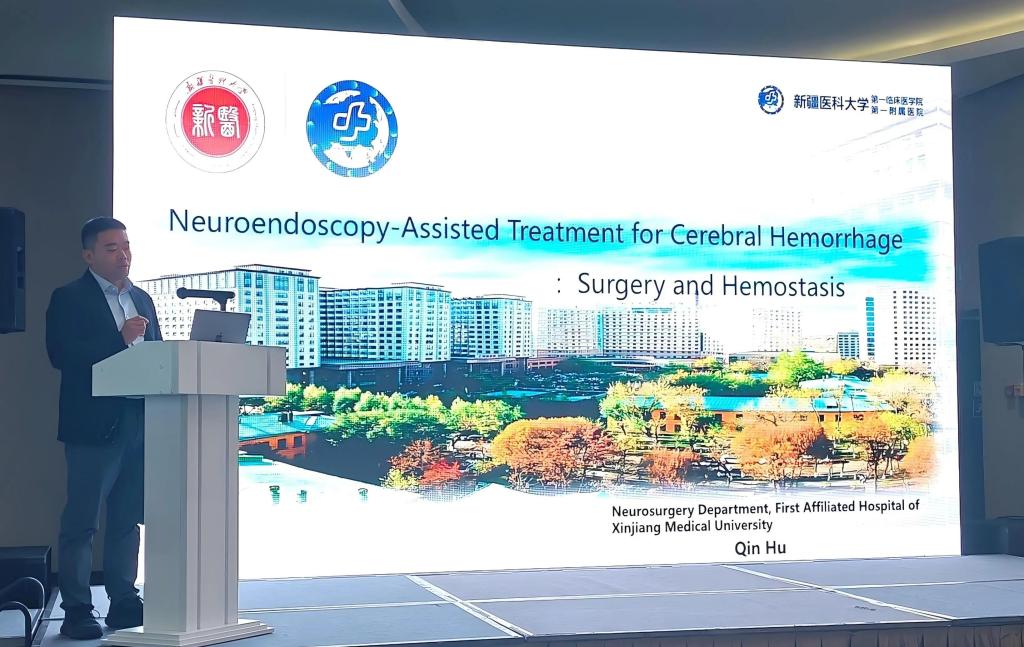 本次论坛汇聚了中国、哈萨克斯坦、乌兹别克斯坦、塔吉克斯坦、吉尔吉斯斯坦五国的神经外科专家,论坛聚焦神经外科前沿技术与临床实践,围绕医疗专业合作方向与模式进行深入探讨。中方专家团成员分别就脑内巨大肿瘤诊治、新生儿脑出血、脊髓栓系综合征、颅缝早闭等儿童神经外科疾病诊疗、经鼻内镜自体组织缝合修补脑脊液漏、神经内镜治疗脑出血以及儿童颅骨修补时机等专题进行了学术分享。中亚国家代表重点介绍了各自国家神经外科发展现状与工作成果,双方对相关内容进行了深入讨论。