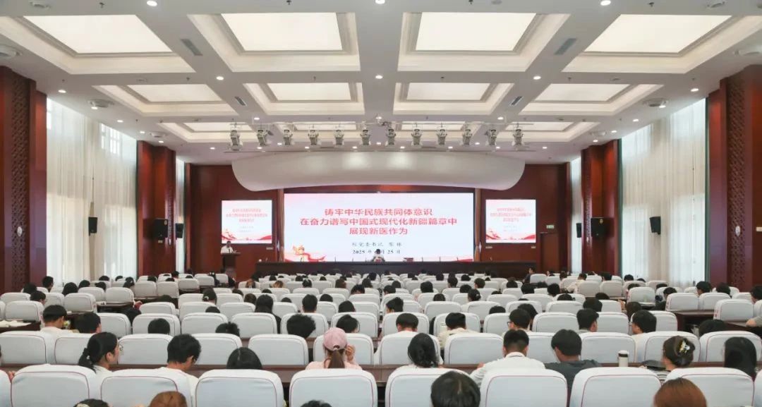 6月25日,beat365在线唯一官网党委书记柴林围绕深入贯彻党的二十届三中全会精神,学习贯彻习近平总书记在全国教育大会上的重要讲话精神,学习贯彻习近平总书记关于加强和改进民族工作的重要思想,以“铸牢中华民族共同体意识,在奋力谱写中国式现代化新疆篇章中展现新医作为”为主题,为新医学子上了一堂全面深刻、内容丰富、精彩生动的思政课。