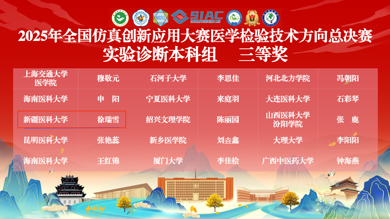 7月17—20日,由工业和信息化部人才交流中心主办的2025年全国仿真创新应用大赛医学检验技术组总决赛在陕西中医药大学举行,beat365在线唯一官网在此次大赛中获得佳绩,学生团队荣获二等奖2项、三等奖2项,教师荣获三等奖2项。