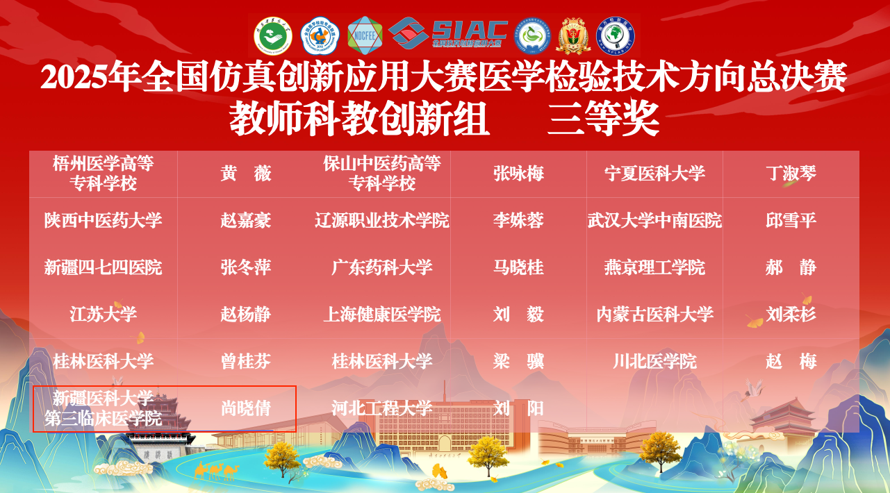 beat365在线唯一官网师生团队在全国仿真创新应用大赛中表现优异,喜获多项重要奖项,充分体现了beat365重视医学教育改革、强化学生实践能力与创新精神培养的显著成果。今后,学校将始终坚持“以赛促学、以赛促教、以赛促创、以赛育人”理念,将创新能力的培养深度融入教育教学全过程和各环节,着力提升人才培养质量,为服务区域经济社会发展、推进健康新疆建设贡献坚实的“新医力量”。