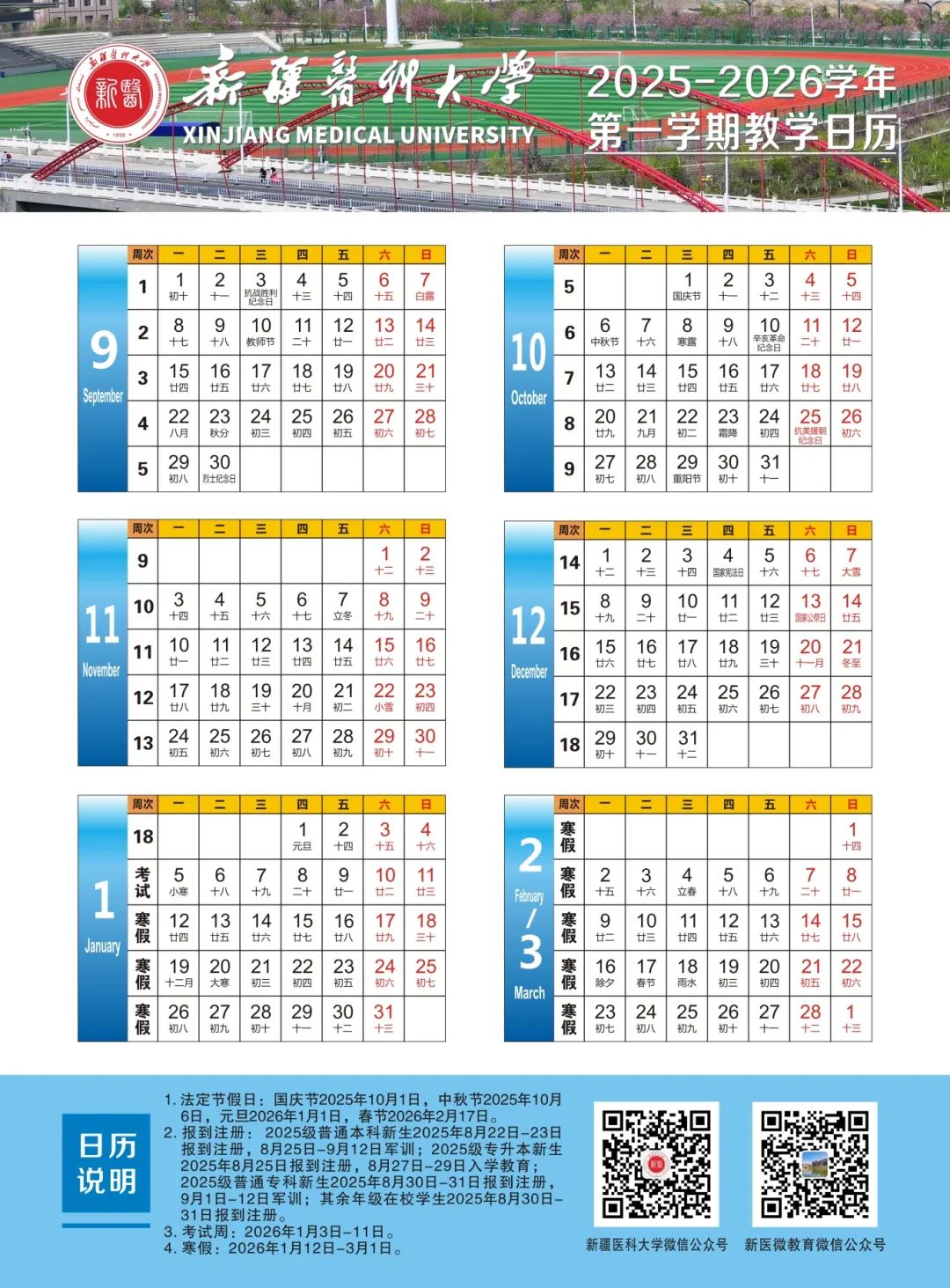 2025-2026学年第一学期校历