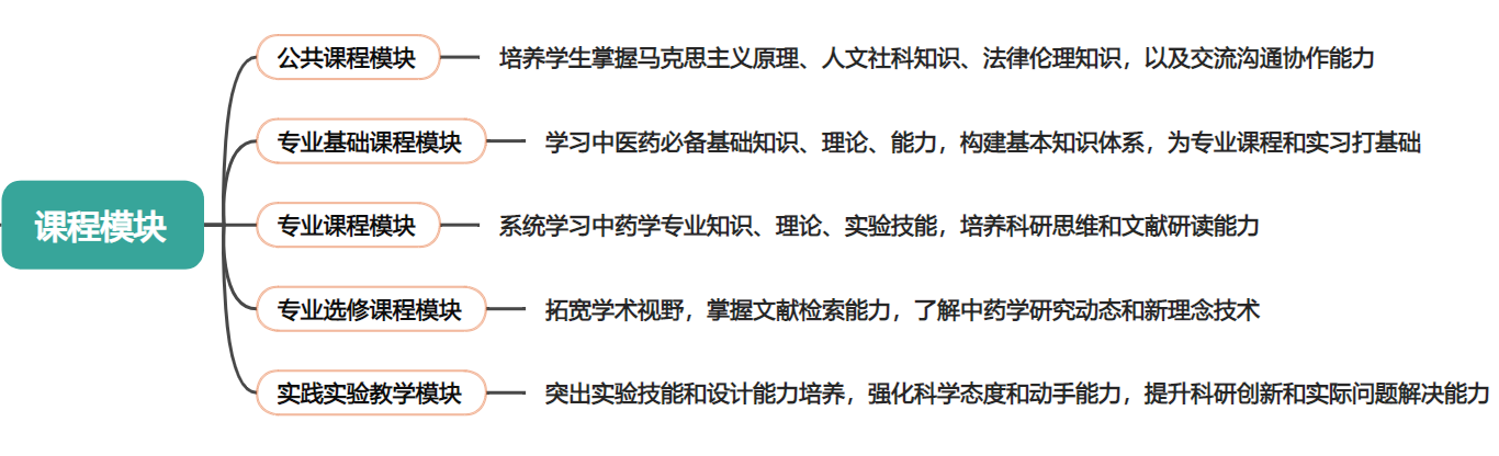 中药学专业构建了“一核心-双融合-三协同”特色培养体系:一核心是指以“中医药文化传承与创新”为核心,双融合即医教协同-与附属医院合作、产教融合-与药企业共建实训基地,三协同是“大学-学院-系”三级协同育人机制。专业构建“理论+实践+创新”三级课程平台,为学生开展科技创新实践活动提供全方位的保障体系,为培养复合型创新人才构建系统完备的育人条件。