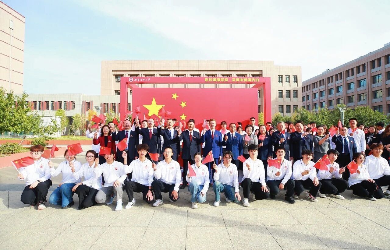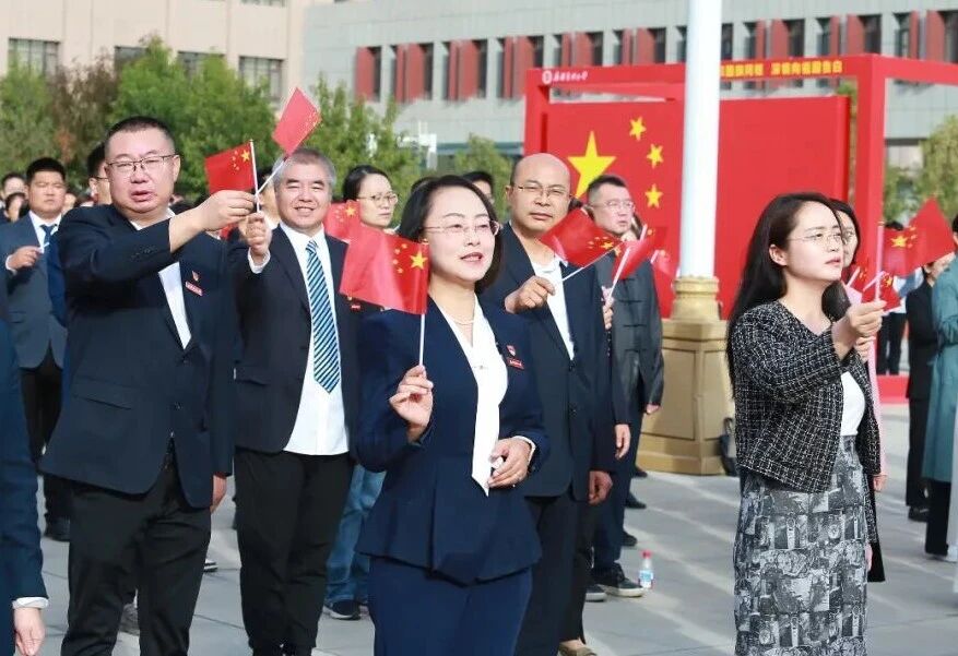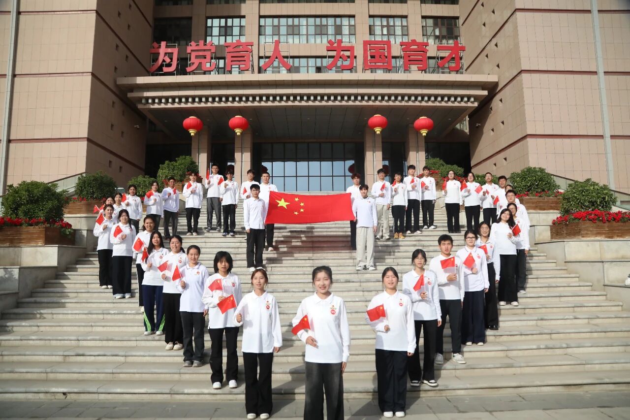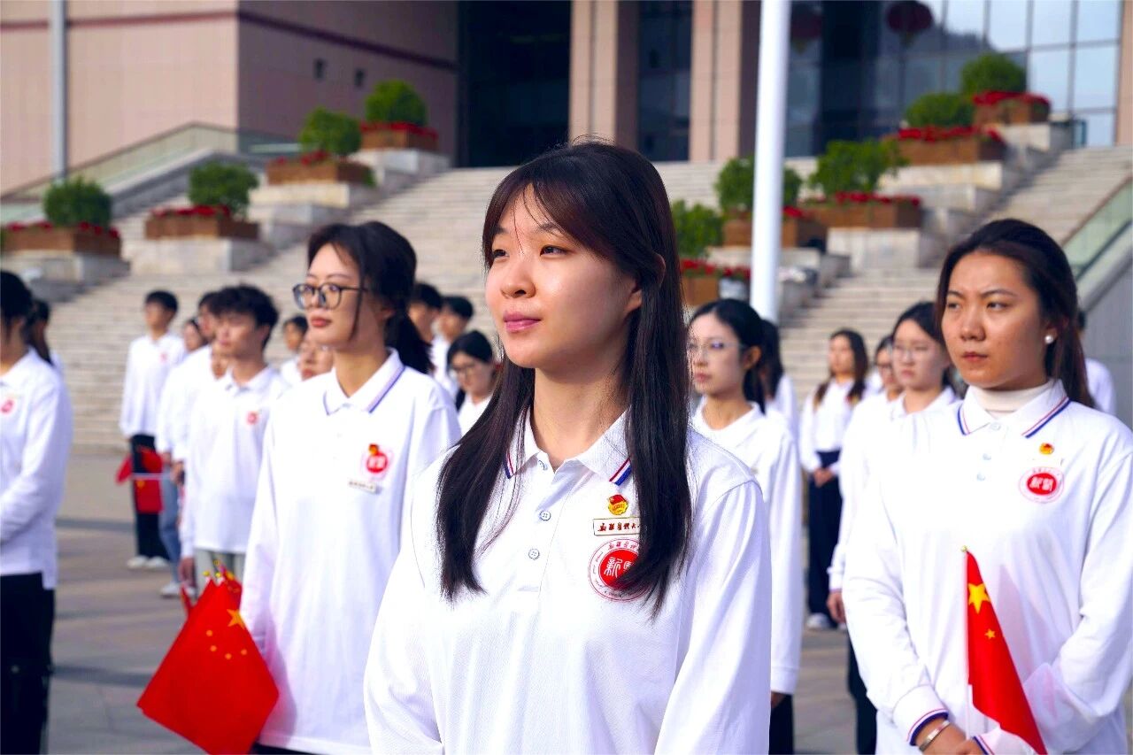 “五星红旗迎风飘扬,胜利歌声多么响亮……” 仪式最后,全场师生挥动着手中的国旗,齐声高唱《歌唱祖国》。这歌声,是祝福,是誓言,是凝心聚力的号角,更是奔赴未来的序曲。歌声汇聚成一片赤诚热烈的海洋,涌动着对祖国繁荣昌盛、国泰民安的最美好祝愿。