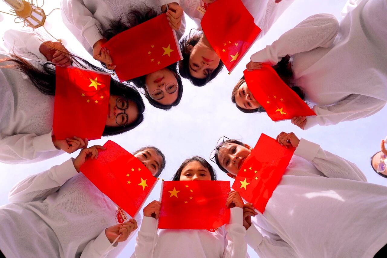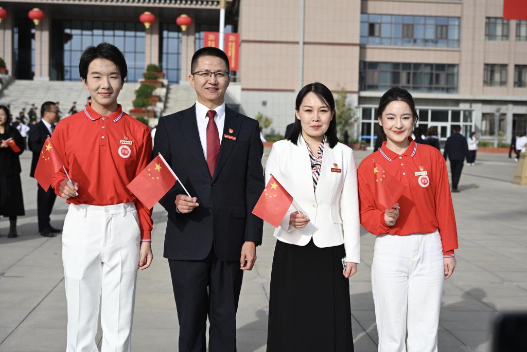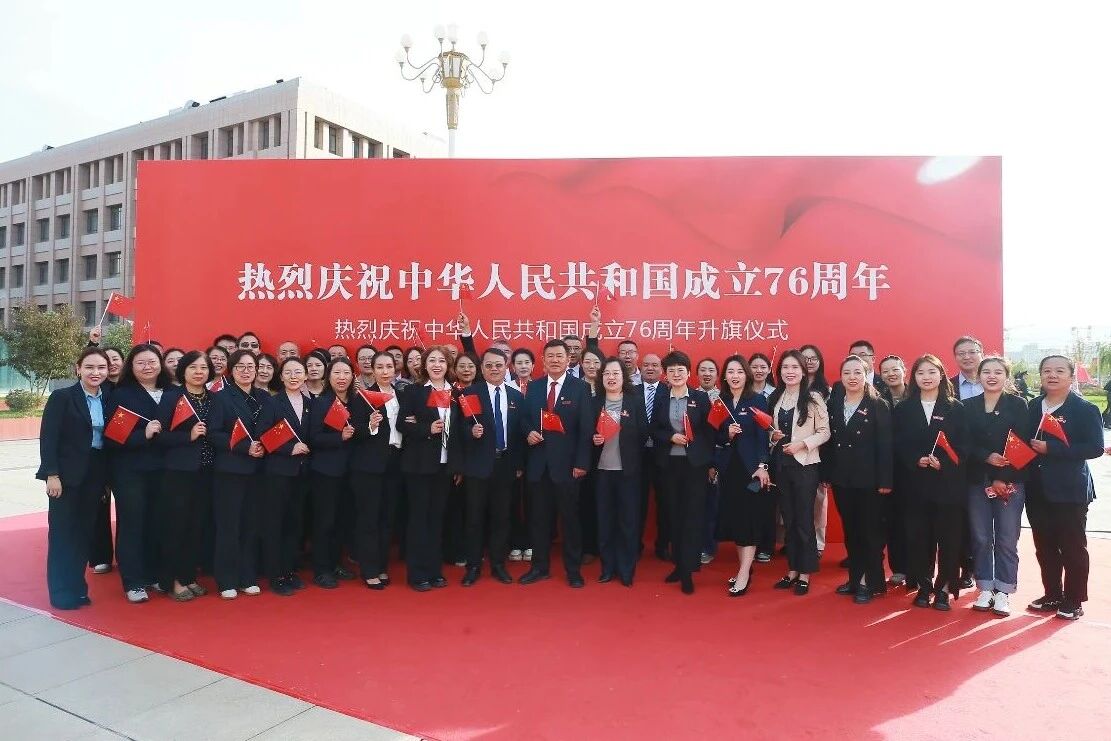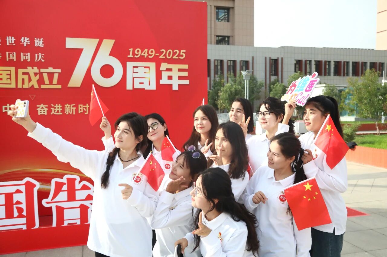 “五星红旗迎风飘扬,胜利歌声多么响亮……” 仪式最后,全场师生挥动着手中的国旗,齐声高唱《歌唱祖国》。这歌声,是祝福,是誓言,是凝心聚力的号角,更是奔赴未来的序曲。歌声汇聚成一片赤诚热烈的海洋,涌动着对祖国繁荣昌盛、国泰民安的最美好祝愿。