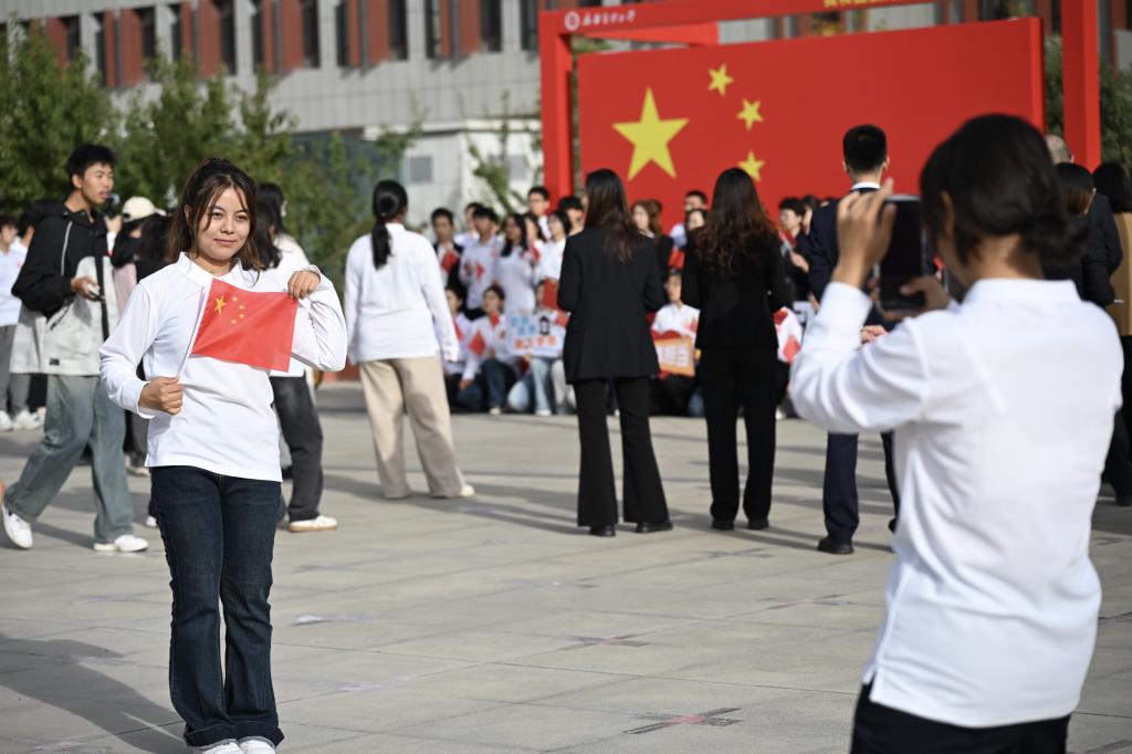 升旗仪式后,新医师生们踊跃参与“我与国旗合个影”活动,用镜头定格与国旗同框的荣耀瞬间,让这份对祖国的热爱,永远镌刻在心底,转化为明日砥砺奋进的不竭动力。
