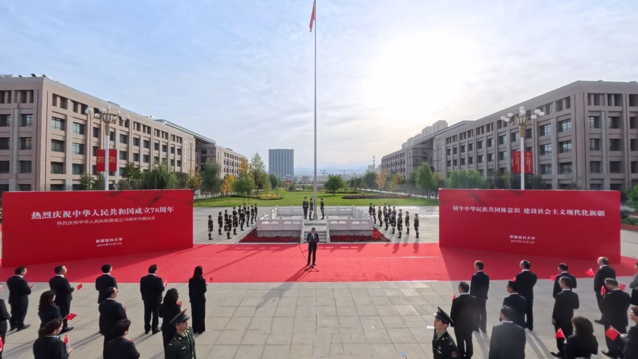 升国旗仪式由校党委副书记、校长阿吉艾克拜尔·艾萨主持。全体在家校领导,副处级以上干部,各职能处室、学院教职工代表,研究生及本科生代表参加了升国旗仪式。