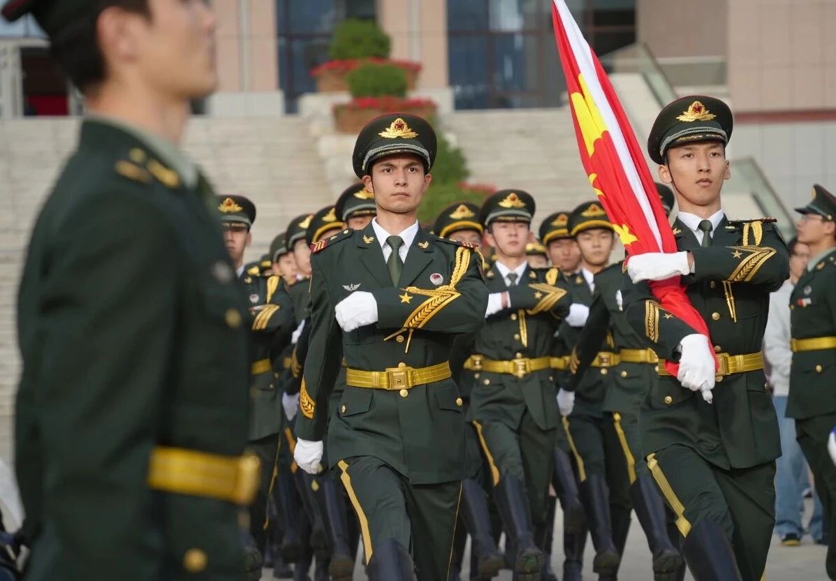 上午10时,升国旗仪式在新医师生们期待的目光中正式开始。国旗班队员目光如炬、步履坚定,护卫着鲜艳的五星红旗庄严入场。那一刻,全场肃立,每一道目光都充满了对祖国的无限敬仰。