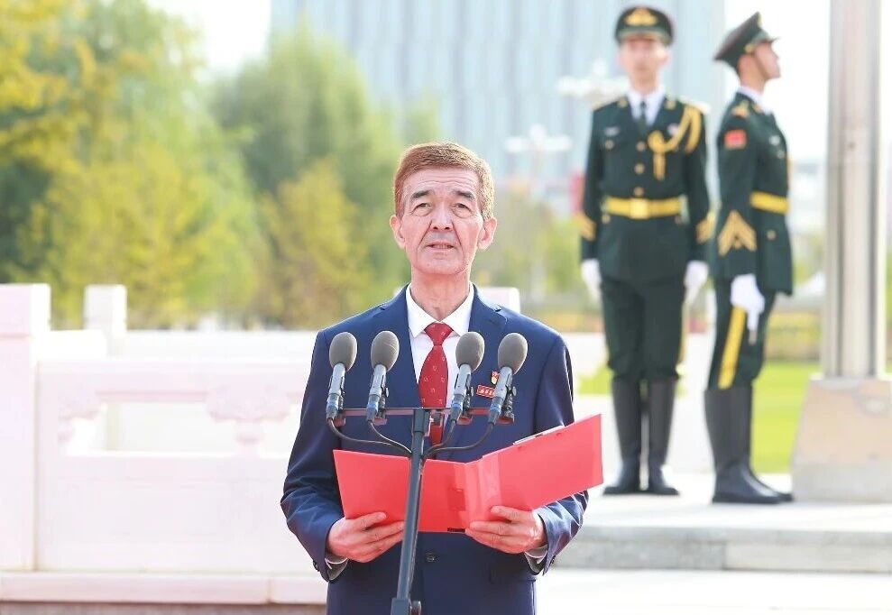 校党委书记柴林发表了国旗下的讲话。他带领新医师生回顾了中国共产党团结带领中国人民砥砺奋进的光辉历程和伟大贡献,重温了党的十八大以来习近平总书记对新疆工作的高度重视和对新疆各族人民的亲切关怀,并立足学校“十五五”规划的新起点,发出了同心筑梦、砥砺前行,推进学校高质量发展的动员令。