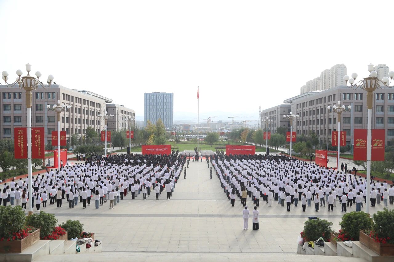 他说,我们正站在承前启后的关键起点,科学谋划“十五五”规划、奋力推进高质量发展,是我们每一位新医人的使命和责任。传承弘扬伟大爱国主义精神,是激励我们新医人不断前行的精神力量。希望广大教师,不忘立德树人初心,牢记为党育人、为国育才使命,赓续学校“对标先进、比追赶超、争创一流”的光荣传统,涵育“师者良善、大医精诚”的教风医风,精进本领、教书育人、塑造灵魂,培养更多扎根边疆、服务人民的合格建设者和接班人。希望全校学子,不负青春、不负韶华、不负时代,在强国建设、民族复兴伟大征程中立大志、明大德、成大才、担大任,把个人成长融入民族命运、国家前途、学校发展,在课堂里求真知、在实验室勇探索、在临床中练本领,做到以德铸魂、以勤精术、以体强身、以美润心、以劳笃行,让青春在祖国和人民最需要的地方绽放光彩!让我们更加紧密地团结在以习近平同志为核心的党中央周围,深入学习贯彻习近平总书记在自治区成立70周年系列庆祝活动中的重要讲话重要指示精神,牢牢扭住新疆工作总目标,统筹发展和安全、开放和安全,永葆“闯”的精神、“创”的劲头、“干”的作风,加快推进高水平研究型医科大学建设,为中国式现代化新疆实践贡献新医力量!