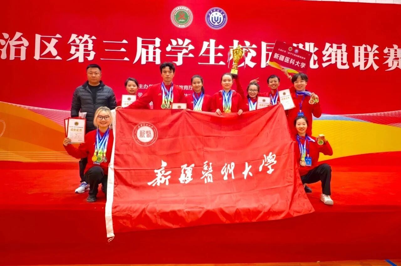 10月24日至27日,2025年自治区第三届校园跳绳联赛在新疆科技学院举办,beat365在线唯一官网跳绳竞训队在此次联赛中再次斩获佳绩,共获得14枚金牌、8枚银牌、8枚铜牌,连续三年蝉联大学甲组金牌总数和奖牌总数第一,延续了beat365在跳绳项目上的传统优势。