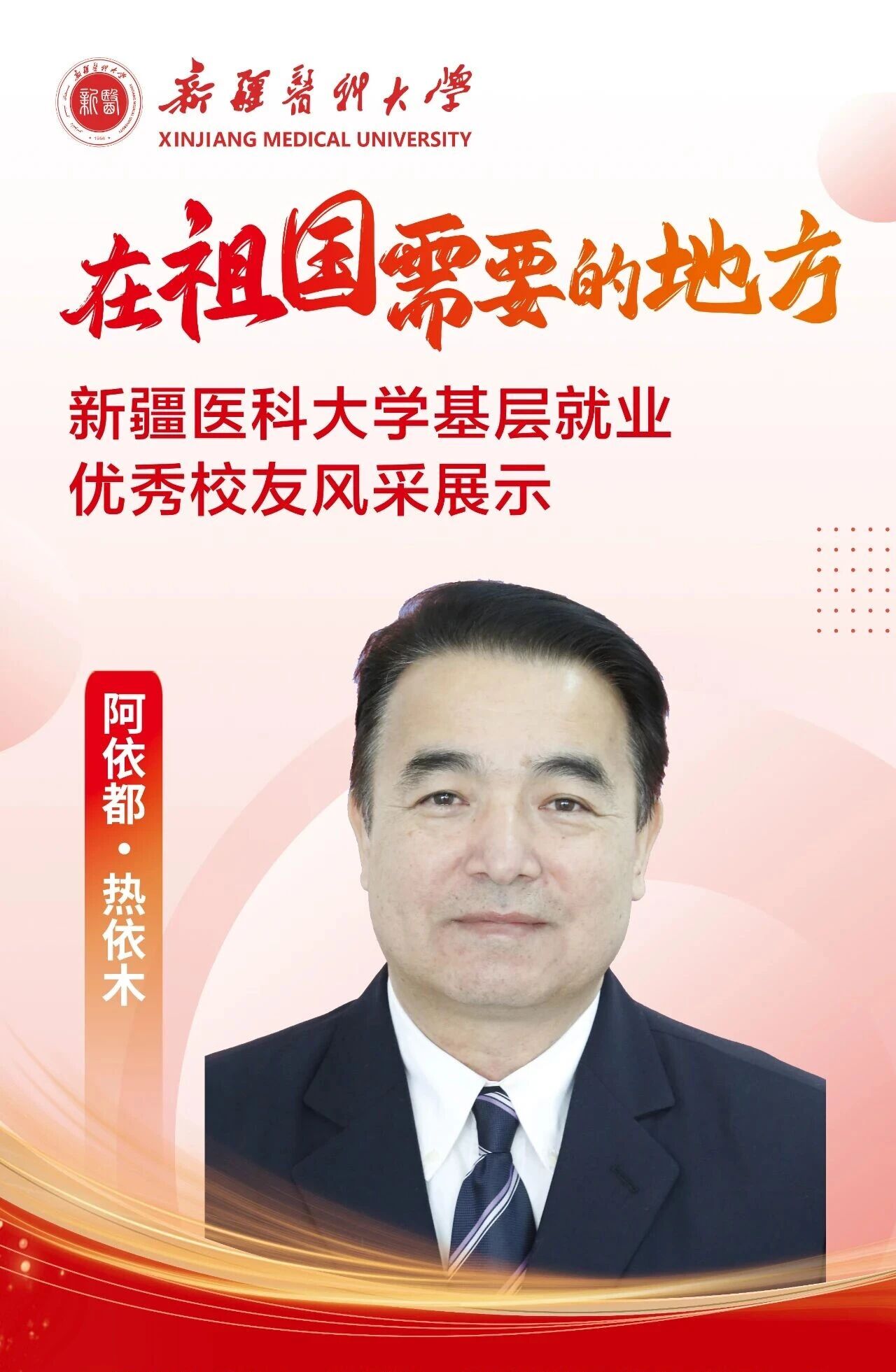 阿依都·热依木,中共党员,1991年毕业于临床医学院临床医学专业,现任巴州人民医院肝胆胰外科名誉主任。刚毕业时,他放弃留在大城市的机会,毅然选择回到家乡巴州,扎根基层医疗一线40余年。他带领团队开展30余项新技术、新业务,完成南疆首例离体肝切除和自体肝移植手术,填补了巴州10余项技术空白。他推动成立新疆包虫病临床研究所巴州分所,争取国家补助政策,每年深入牧区义诊,使当地包虫病的发病率从15例/10万降至3.2例/10万。40年来,他累计发表论文近30篇,获得自治区及自治州科技进步奖12项,培养了大批医疗骨干。如今,年过六旬的他依然坚守在临床科研一线,守护着各族人民的生命健康,为青年医学生树立了扎根基层、服务边疆的榜样。他的事迹证明:基层是医者成长的最好舞台,更是实现人生价值的广阔天地。