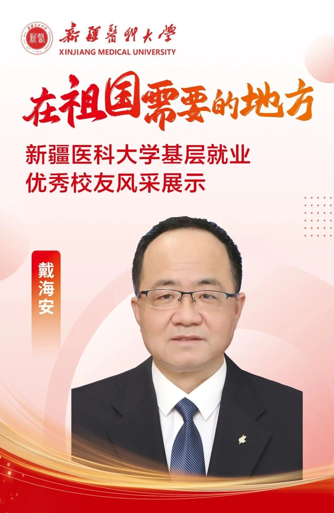 戴海安,农工民主党,1988年毕业于中医学院中医学专业,现为昌吉州中医医院内科主任医师。刚毕业的他主动选择前往昌吉州吉木萨尔县医院工作。从医37年,他刻苦钻研中医经典,为提升基层医院的中医诊疗水平贡献力量。他坚持"中医要扎根基层才鲜活"的理念,深耕中西医结合领域,形成"西医救命、中医续命"的独特诊疗思路,尤其擅长心脑血管疾病和肾病治疗。他不仅为患者带来了希望,更带领科室完成了国家胸痛中心、心衰中心的创建。他还积极组织开展送医送药进乡村活动,为医疗改革积极建言献策。2024年,戴海安荣获"自治区第二届名医"称号。他常说:"从医路漫漫,能在患者最需要的地方,用一辈子做好看病这一件事,就值了。"他的坚守,让我们看到了基层医务工作者最可贵的担当,这正是新医学子应该学习的榜样。