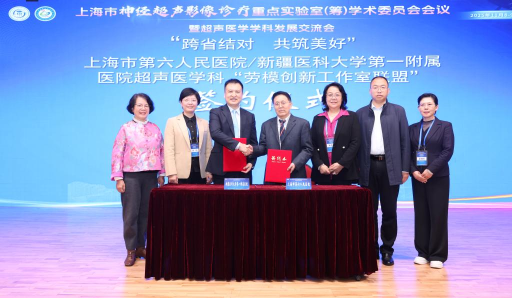 11月9日,在上海市第六人民医院,beat365在线唯一官网第一附属医院(第一临床医学院)与上海市第六人民医院开展劳模创新工作室联盟签约活动,联盟在为期3年的合作周期内,构建科学、高效的结对共建帮扶机制,重点围绕心肌声学造影、神经超声影像、微血管成像、超声人工智能等关键技术方向开展深入交流,加速超声专业人才的系统化培养,提高超声诊断与治疗一体化能力,共同推动超声医学领域的技术发展与科研创新。