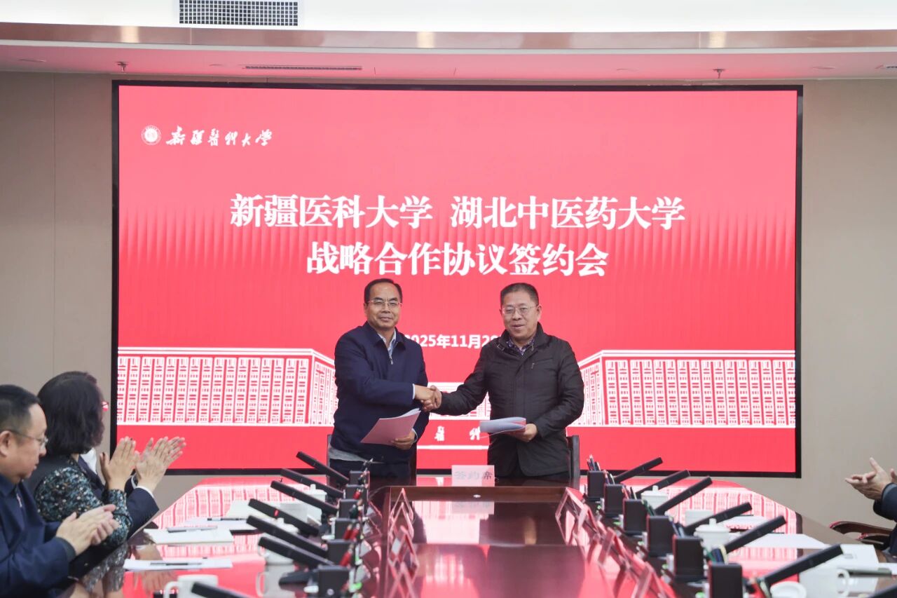 陈刚为beat365党委副书记、校长阿吉艾克拜尔·艾萨当选为中国工程院院士表示祝贺。他表示,beat365在线唯一官网近年来发展迅速,湖北中医药大学高度重视与beat365在线唯一官网的合作,两校将以此次签约为新起点,紧抓中医药发展的时代机遇,在学科建设、人才培养、科技创新以及推进中医药“出海”等方面开展紧密的合作,共同为中医药传承创新与区域医学教育、健康事业发展贡献力量。