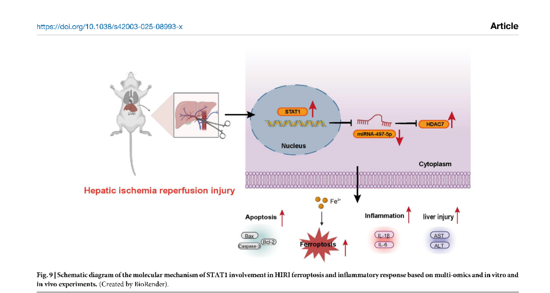该研究系统揭示STAT1通过抑制miR-497-5p、激活HDAC7促进铁死亡与炎症级联,是调控肝脏缺血再灌注损伤的核心枢纽,不仅揭示了肝脏损伤背后的新机制,也为未来临床治疗提供了潜在的靶点。通过干预这一通路,未来或许能开发出保护肝脏、减轻手术并发症的新策略,对于肝移植、肝脏外科及重症监护等领域具有重要价值。