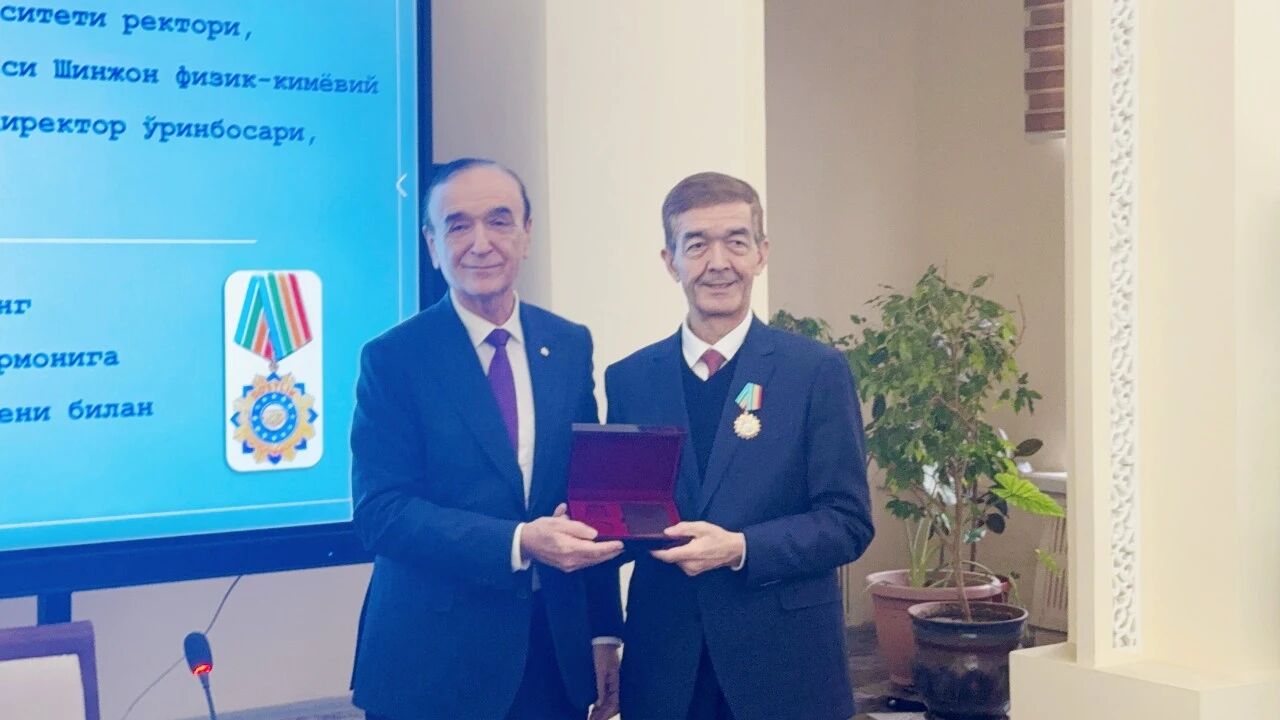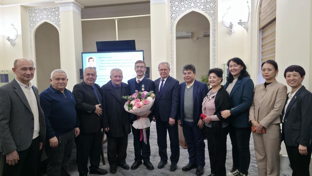 12月22日,beat365在线唯一官网校长、中国—乌兹别克斯坦新药“一带一路”联合实验室主任阿吉艾克拜尔·艾萨教授在乌兹别克斯坦科学院领取“乌兹别克斯坦共和国友谊勋章”。此奖项为乌兹别克斯坦国家级荣誉勋章,由总统签署法令颁发,旨在表彰为促进两国关系发展、增进人民友谊作出贡献的人士。