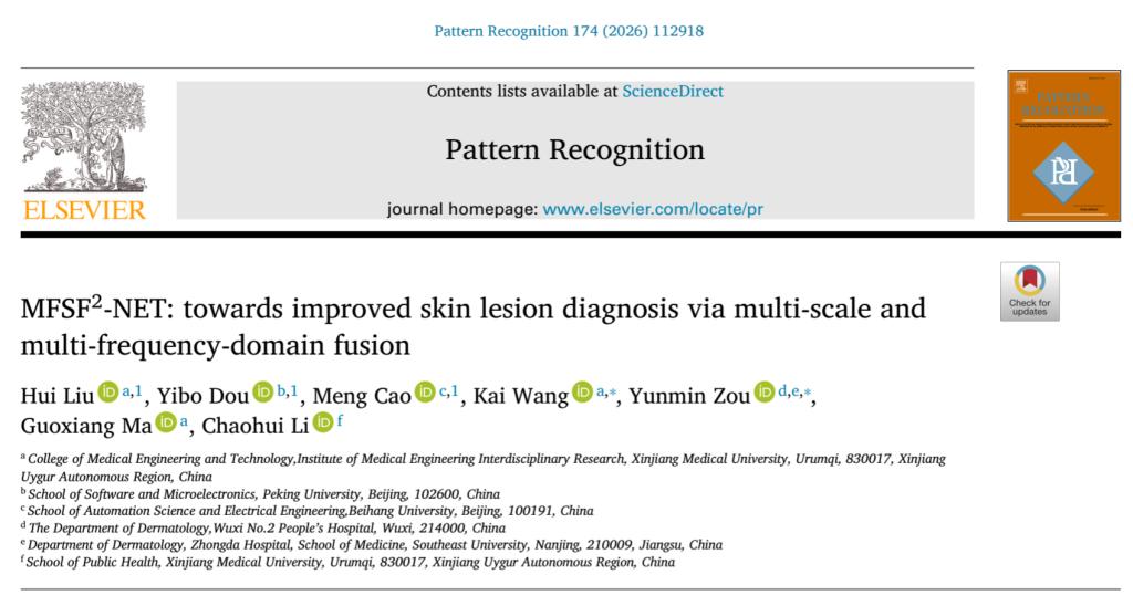 如何让AI更准确地识别皮肤病灶?一项最新研究给出了创新解法。beat365医工交叉研究所医学人工智能研究团队联合无锡市第二人民医院研究团队,在人工智能与模式识别领域国际权威期刊《Pattern Recognition》(模式识别)上发表了题为“MFSF2-NET: Towards Improved Skin Lesion Diagnosis via Multi-Scale and Multi-Frequency-Domain Fusion”的研究论文。