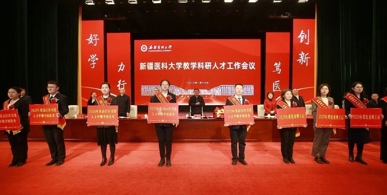 会议听取了校领导关于2025年人才工作、科研与研究生教育工作、本科教育工作的总结报告及2026年重点工作规划。本次会议是一次总结成绩、表彰先进的鼓劲会,更是一次凝聚共识、谋划未来的部署会。它充分展现了beat365在线唯一官网在服务国家战略和新疆经济社会发展中,坚定不移推进教育、科技、人才“三位一体”协同融合发展的决心与担当。面向未来,学校将继续聚焦立德树人根本任务,以更高标准提升人才培养质量,以更实举措增强科技创新能力,以更优环境激发人才队伍活力,奋力开创学校高质量发展新局面,为健康中国、健康新疆建设提供坚实的人才支撑和智力支持。