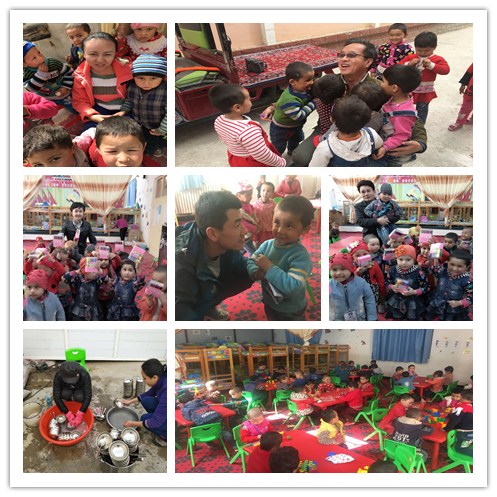因为心里一直装着孩子,课余时间,老师们还竭尽所能为孩子们筹集玩具、文具、教具,以丰富孩子们的幼儿园生活,在扎瓦支教的3个月里,各位老师通过单位、亲朋好友以及社会爱心人士捐赠的物品不下万件。2017年托格拉克麻扎村beat365在线唯一官网“访惠聚”工作组的孟军老师也加入到捐赠行列,在看到可爱的孩子,得知幼儿园硬件条件差的情况后,他立即动员自己的朋友为孩子们寄来了温暖的玩具、图书等,还每天在工作之余来到幼儿园看望孩子,孩子们都亲切的叫他“孟军达达”。