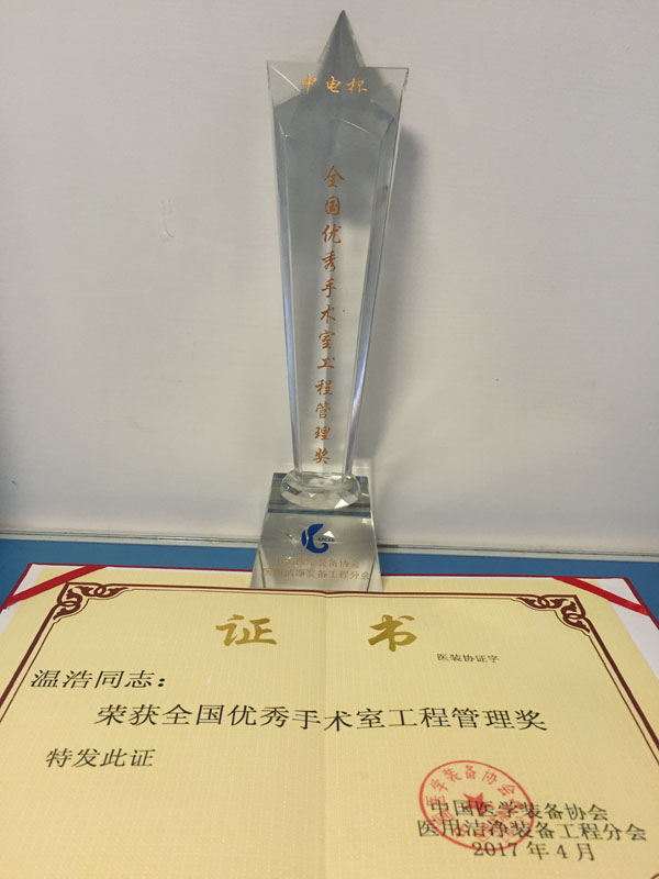 在近期结束的中国国际医疗环境与健康大会暨中国医学装备协会医用洁净装备工程分会年会上,beat365在线唯一官网第一附属医院喜获“全国优秀手术室工程奖”,温浩院长荣获“全国优秀手术室工程管理奖”。