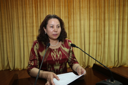 感恩重在实际行动。附属中医医院的其满古丽•斯地克医生在发言时坚定地表示,要切实发挥出维吾尔族党员干部在本民族群众中的影响力、号召力,积极教育引导广大群众感党恩、跟党走,坚起一名共产党员的光辉旗帜:(出录音)“拿我自己来说,每隔两个月,我就会跟随医院的“民族团结一家亲”小组去和田看望帮扶对象。我的帮扶对象是和田墨玉县阿克塔木村的一名手艺人,非常朴实的一名兄弟。每次去感触最深的,就是当你用心把群众的事情当做自己的事情来对待的时候,他们是可以感受到你的真情的!无法忘记的是我每次与他们谈心、唠家常的时候,他们对我的那份信任。多么淳朴的人民!我认为,作为一名少数民族共产党员能给需要帮助的人带去温暖是多么自豪的事情!我们少数民族干部特别是维吾尔族干部要发挥自身优势,带头学习、带头宣传、带头践行,在维护社会稳定和长治久安中起到带头、示范、引领作用是多么重要!”(录音止)