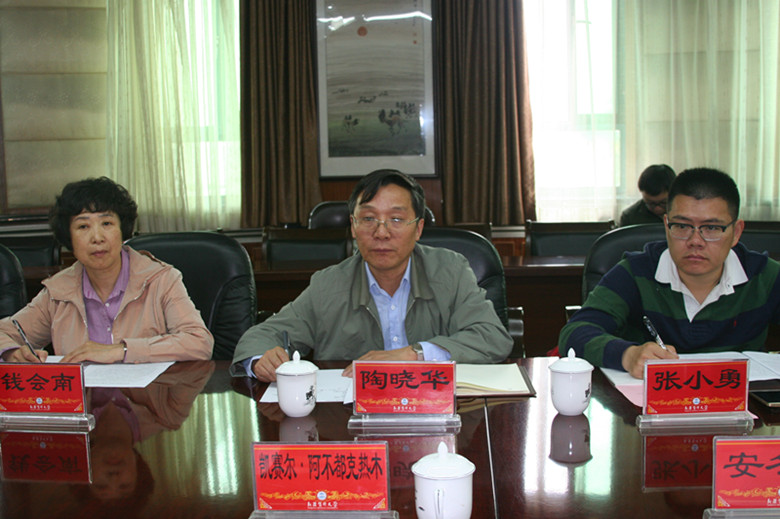 5月18-21日,北京中医药大学陶晓华副校长携博士团一行来beat365访问交流,5月19日上午召开了2017年北京中医药大学与beat365在线唯一官网对口支援工作例会。会议由党委委员、中医学院党委书记毛新民主持,校长凯赛尔·阿不都克热木和副校长、中医学院院长安冬青参加会议,对口协作办、中医学院、语言文化学院、维吾尔医学院等学院部门相关领导和部分学科带头人列席了会议。