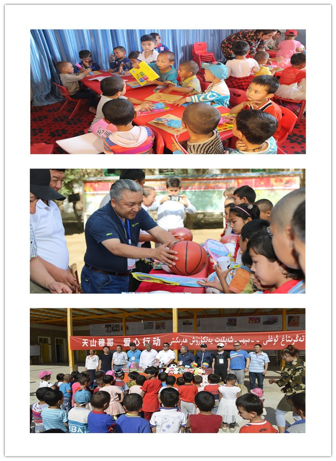 5月28日,公益组织“天山穆哥 爱心行动”穆合塔尔•叶太木、耿安新一行两人在工作组的带领下,来到依格孜艾日克村小学、村委会幼儿园,向孩子们捐赠了一批篮球、排球、足球、跳绳、文具、毛绒玩具等学习、体育用品。