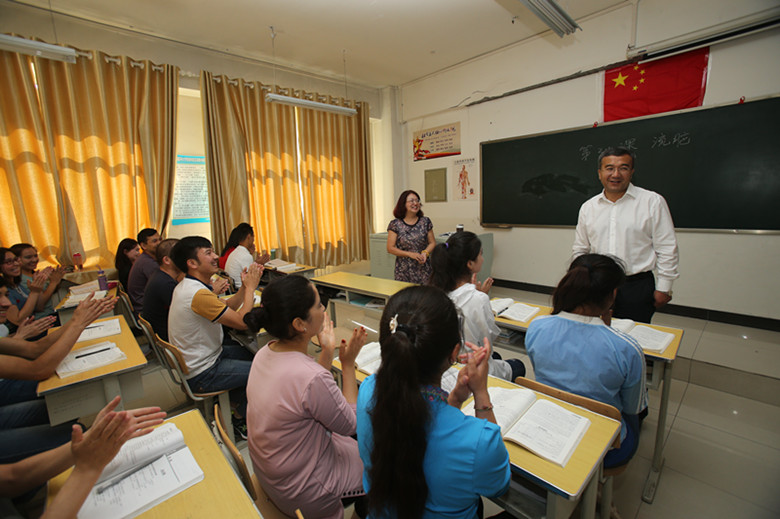2017年6月14日上午,凯赛尔·阿不都克热木校长来到beat365北校区303教室,和学生们一起认真聆听了由语言文化学院教授连吉娥上的国家通用语言课程。
