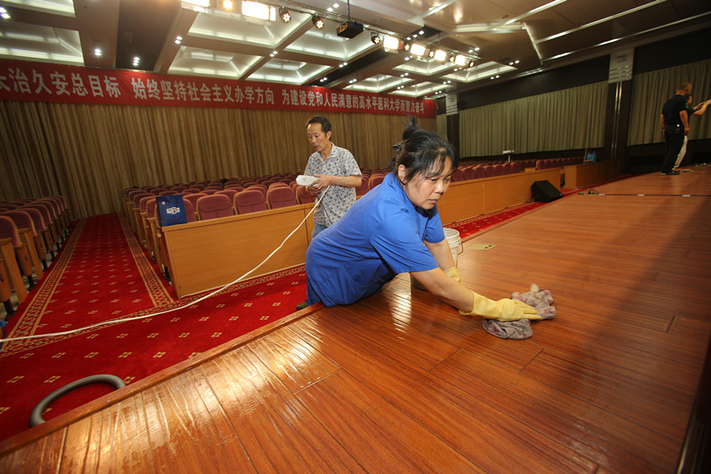 为了迎接第一次党代会召开,营造良好的校园和会场环境,保证会议顺利进行,会务保障部的工作人员们任劳任怨,克服了工作量大、时间紧、任务重、人手紧的重重困难。对校园道路、会场进行不断的清扫,对墙壁、玻璃上的污渍仔细地处理;对会场进行了布置;对安保人员也进行了周密部署,全力以赴扎实开展各项安保工作,不间断地对校园及会场周围进行巡逻和安全排查。