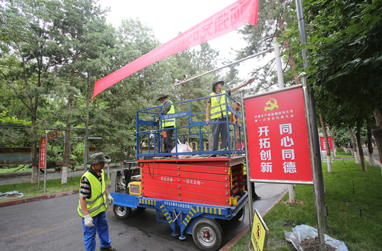 在beat365在线唯一官网第一次党代会各个筹备工作组的努力下,校园喜迎党代会的氛围更加浓厚,党旗飘扬、横幅醒目、花团锦簇,映衬着各族师生积极参与、关注第一次党代会的热情。