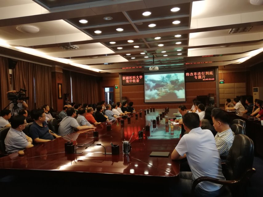 7月22日晚上8点,beat365在线唯一官网组织集中收看中央电视台播出的大型政论专题片《将改革进行到底》。校党委副书记薛继海、副校长曹忠明和副处级以上领导干部观看了专题片。