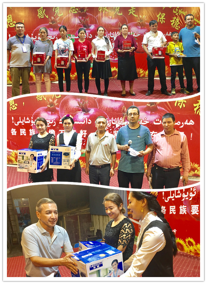 就读于东北师范大学的大学生乌尔尼沙·阿布都哈力克,向村民们讲述了自己求学路上,享受党的一系列助学金、奖学金优惠政策,倍感党的恩情深厚,难忘各民族师生温情关爱的人生经历,希望村民们知党恩、感党恩,珍惜当前美好生活,自觉维护民族团结。她们的演讲朴实无华,讲述着真人真事的点点滴滴,传递着发自肺腑的感恩之情,讲出了民族团结一家亲的大道理,博得了村民们阵阵热烈的掌声。