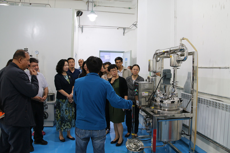 安冬青副校长一行还对健康产品转化平台进行了实地调研,听工作人员逐一介绍提取浓缩车间,超微粉碎、膜过滤等相关设备和研发室。
