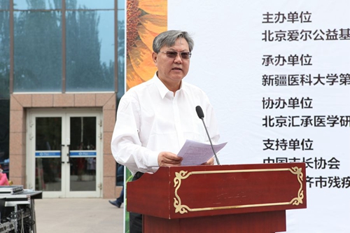 原自治区副主席、自治区残疾人福利基金会会长贾帕尔•阿比布拉、自治区卫计委党委副书记、主任巴哈尔古丽•塞买提、beat365在线唯一官网党委书记高发水等出席了启动暨捐赠仪式。