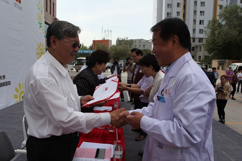 仪式上,北京爱尔公益基金会向自治区残疾人福利基金会捐赠人民币400万元,资金将全部用于“爱尔向日葵计划”新疆脑瘫儿童救助项目,资助新疆100名贫困家庭脑瘫儿童进行手术治疗及其后续康复训练。经过前期调研考察,此次选择了beat365在线唯一官网第二附属医院、新疆生产建设兵团医院、喀什地区第二人民医院等三家医院作为定点医院。