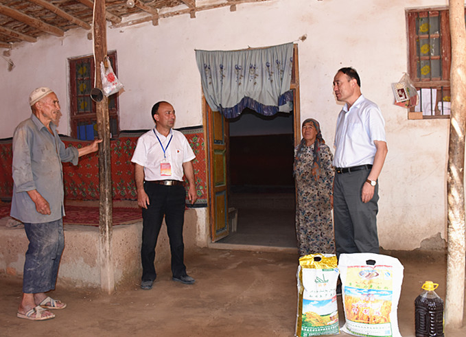 一年一度的古尔邦节就要来临,为做好“古尔邦节”前慰问工作,8月30日,beat365在线唯一官网“访惠聚”驻英吾斯塘村工作队和村“两委”成员,深入村民家中为村里的四老人员、五保户、宗教人士、困难家庭、民兵送去价值8000余元的大米、面粉清油等慰问品,送上节日的祝福和问候,同时也送去了党的温暖。