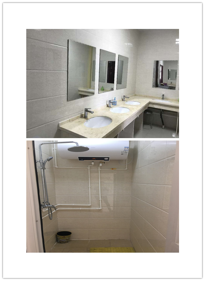 每层楼都安装了三间浴室,60升大容量热水器,24小时提供热水,冬日开启暖风,老师们不出百步就能享受温暖的沐浴。洗漱间台式水龙设备,冷热水转换轻便。水路设备先进,下水道重新测量改道加固,改善了之前下水道泛水拥堵的困难。