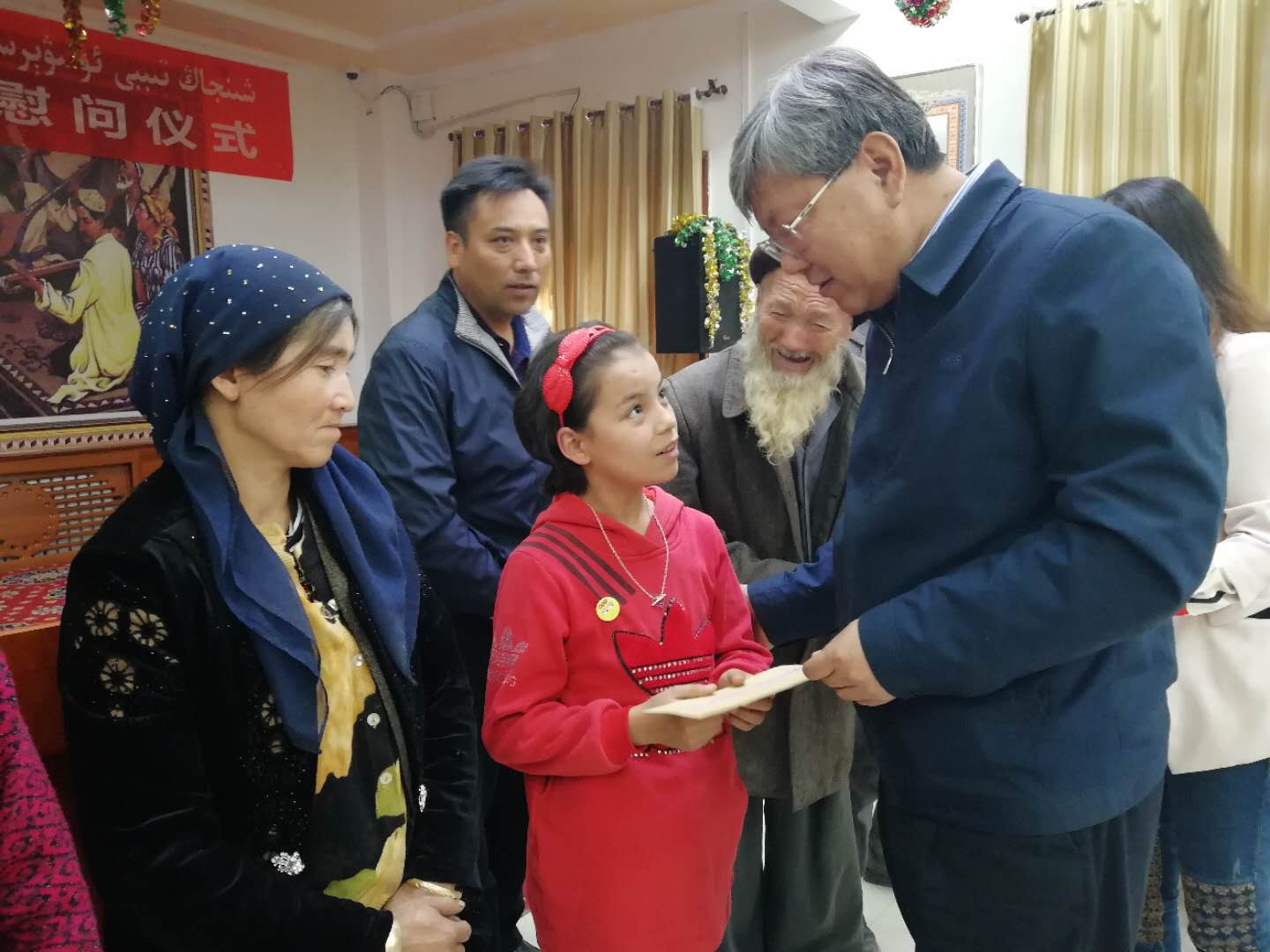 有了新亲戚不忘旧亲戚,7日上午,高发水书记一行还来到beat365在线唯一官网2014、2015、2016“访惠聚”驻村工作点——墨玉县芒来乡达汗村,看望慰问了40位生活贫困的老人,并给每人送上了500元慰问金。