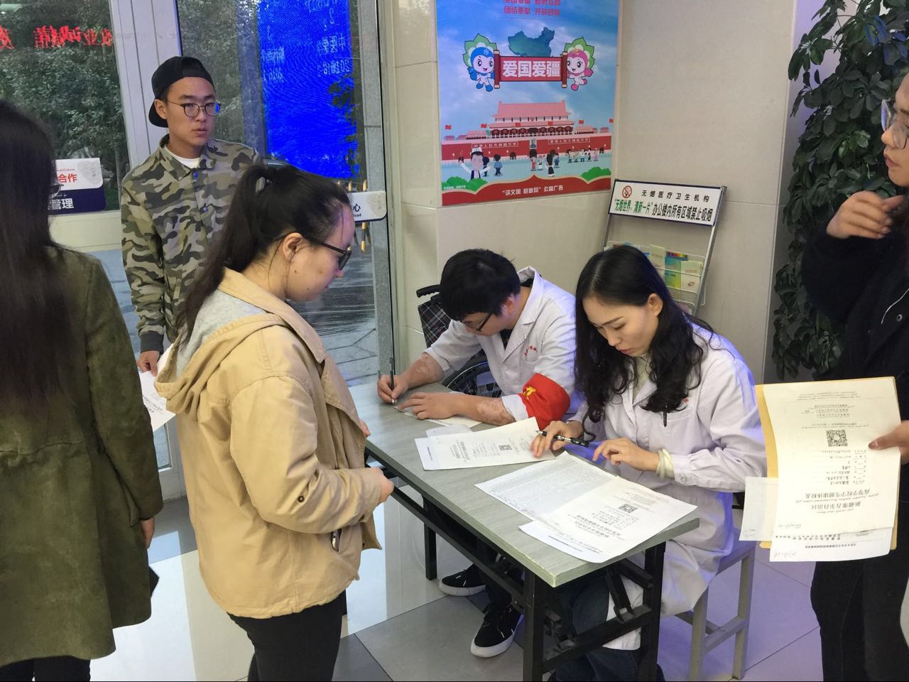 为了严格把控学生的健康状况和体检结果的准确无误,除了校医院的全体48名工作人员的相互协作之外,医院还外聘了有关B超,心电,检验等专业性强的专家来进行操作和指导。与此同时,校医院对体检所需试剂的准备以及B超等项目所需大一点的设备的调适都力求完备,做到最好。为了不让我们的学生饿肚子,过于疲劳,医院的工作人员每天早上六点就起床,七点以前就站在工作岗位上,争取每天在一点前结束体检。
