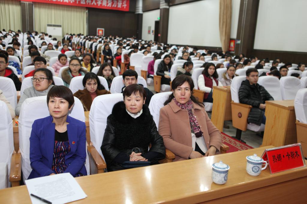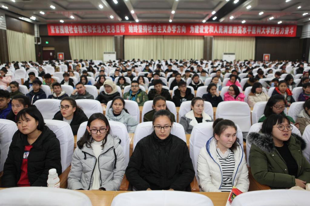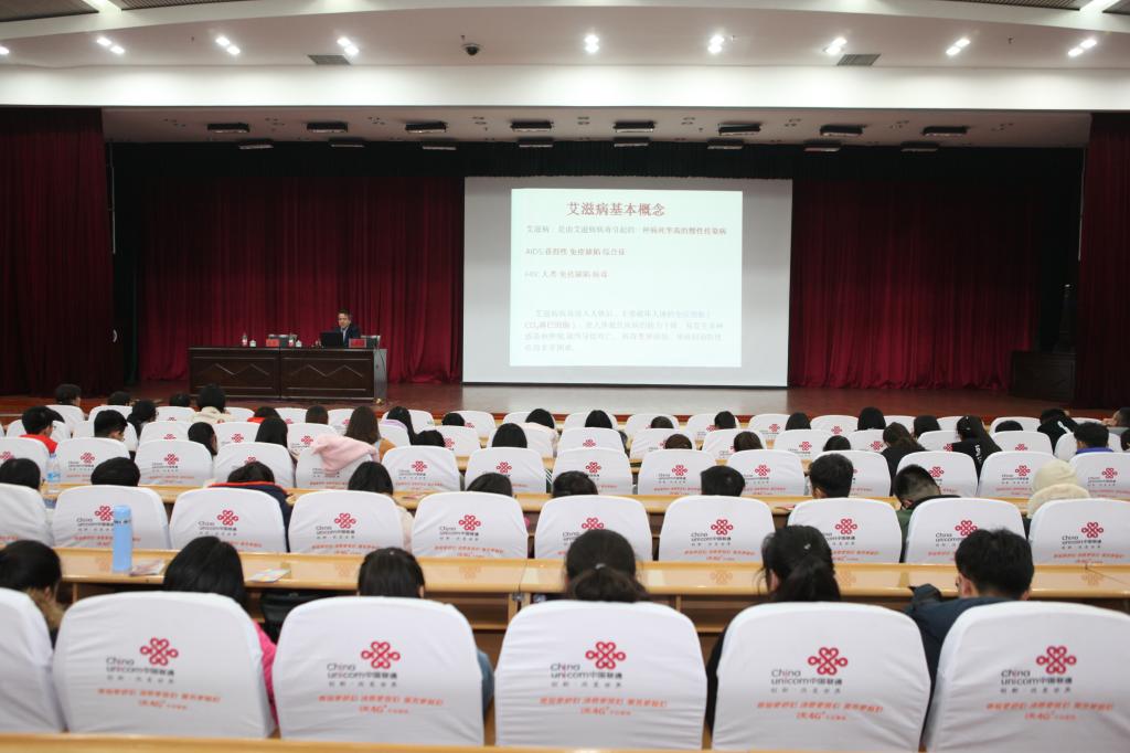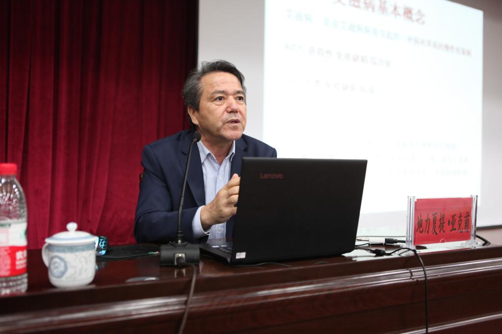 为普及艾滋病防治知识,增强大学生自我保护意识,11月29日晚八点,自治区防治艾滋病工作委员会办公室主任、新疆艾滋病性病防治协会会长、自治区十一届政协委员、beat365在线唯一官网硕士研究生导师地力夏提•亚克甫教授为beat365师生作了题为“携手防艾,重在预防”的预防艾滋病知识讲座。beat365在线唯一官网副校长热娜·卡斯木,职能部门、相关学院工作人员及学生聆听了讲座。校团委书记马翠主持讲座。
