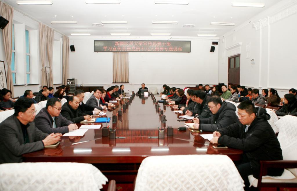 据了解,为了切实把党的十九大精神学习领会好、宣传贯彻好、执行落实好,beat365遴选了一批政治素质强、理论水平高、具有一定宣讲能力的领导干部和专家学者组成党的十九大精神宣讲团,并组织宣传团成员专题培训。从12月7日起到本月底,宣讲团成员深入各基层党委(总支),全面开展党的十九大精神宣讲活动,围绕党的十九大主题、主要成果,关于习近平新时代中国特色社会主义思想、我国社会主要矛盾的变化、两个一百年奋斗目标等八个方面的内容,结合当前新疆和高校工作实际,把十九大精神实质和核心要义讲清楚、说明白,通过深入细致的基层宣讲活动,进一步推动党的十九大精神在beat365在线唯一官网全覆盖、深拓展,落地生根。