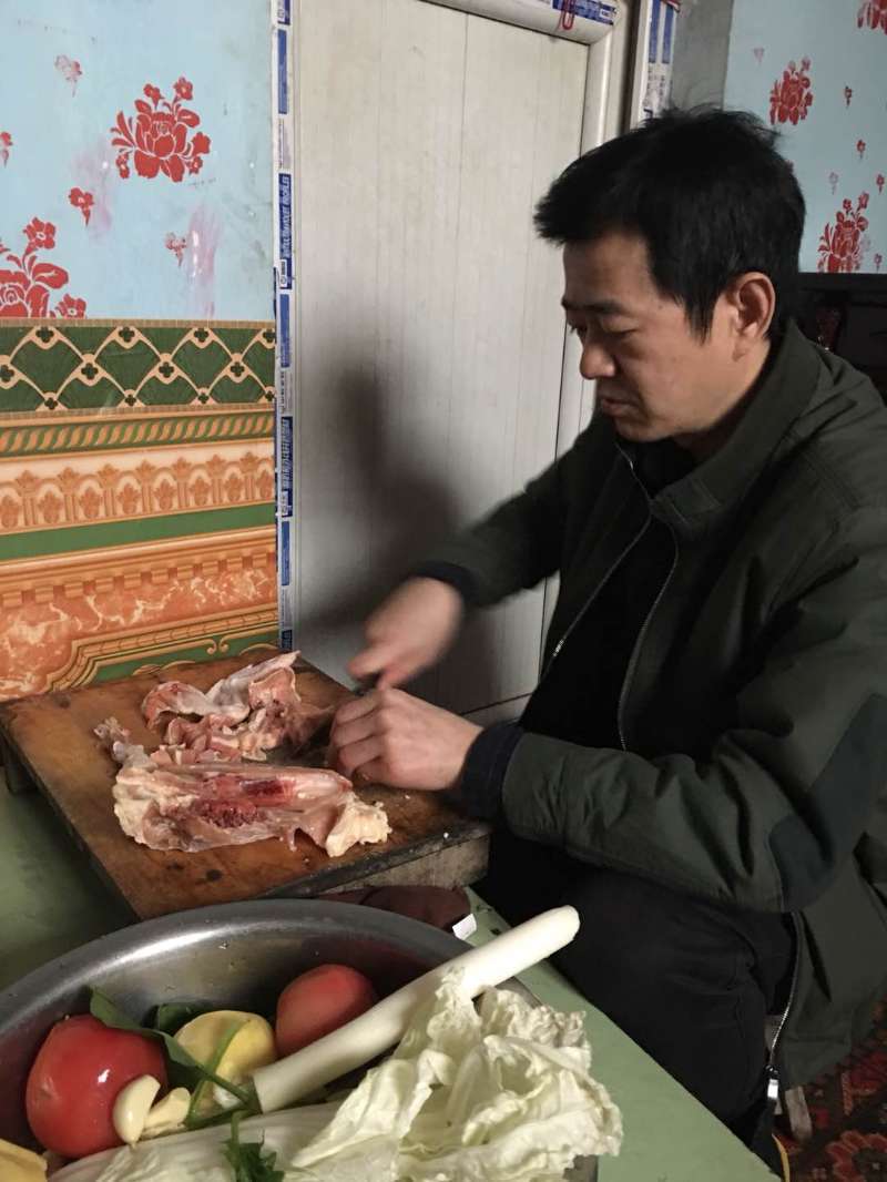 摘菜、削土豆、切肉……大家与亲戚们一起准备午餐,不一会儿就把几道美味的菜肴端上了桌。