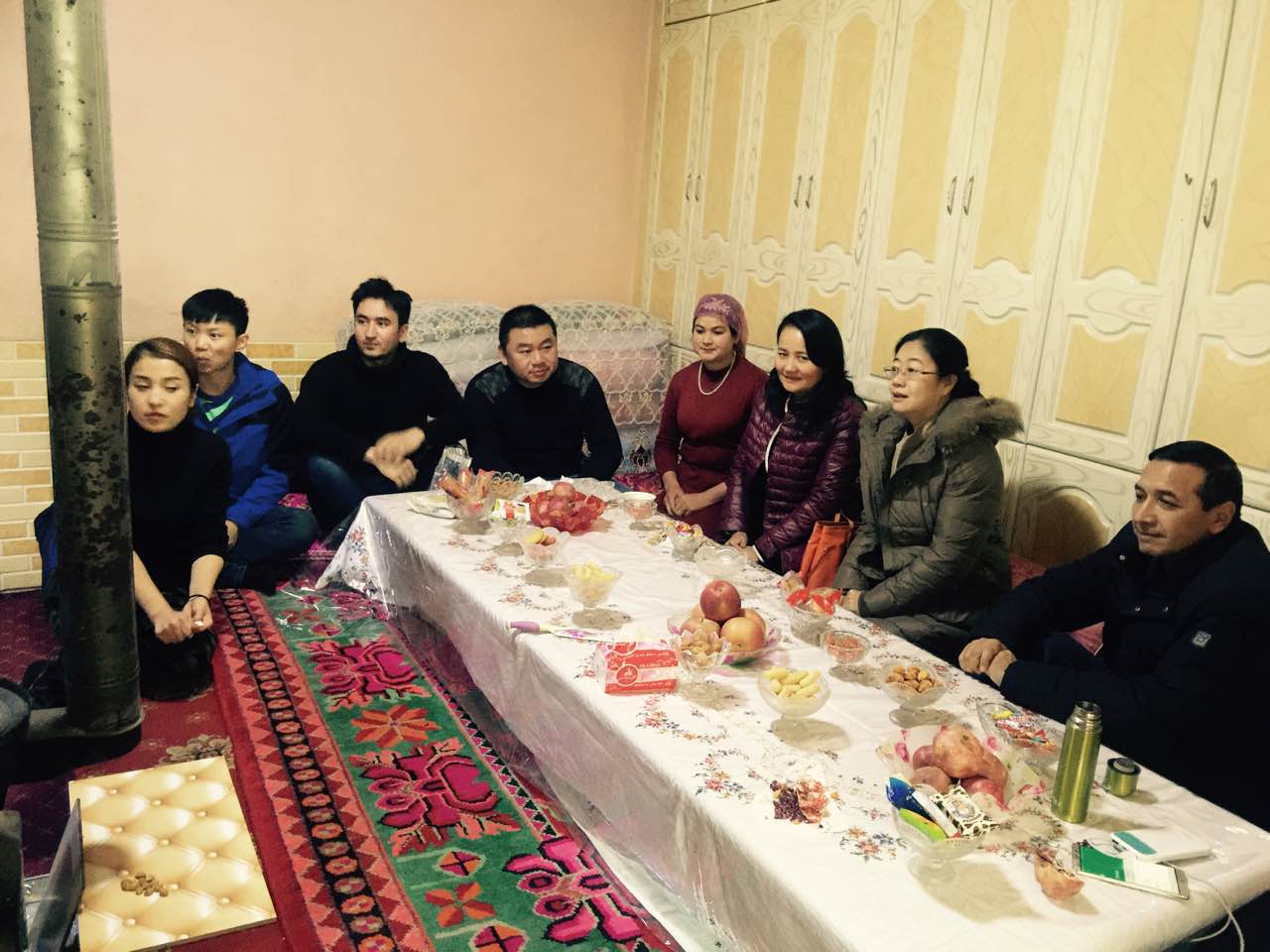 结亲干部和亲戚们围坐在火炉旁,向亲戚宣传了党的十九大精神,与亲戚交流党的扶贫好政策,并引导亲戚感党恩、听党话、跟党走。聊着生活的期待和对未来的打算,亲戚们听着职工讲述党的好政策,描述外面精彩的世界,鼓励孩子们好好学习国语,学习科学文化,长大了能走出家乡开阔眼界,增长本领,为改变家乡的面貌贡献力量。