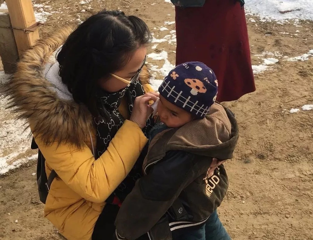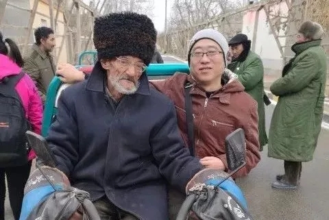 在图书馆洪丽平老师的亲戚阿不杜艾尼·热木提的家,洪丽平老师拿出为亲戚准备的围巾和衣服,为寒冬增添了一缕温暖。老人高兴地说:“亲戚送的衣服暖和,心更暖和。”