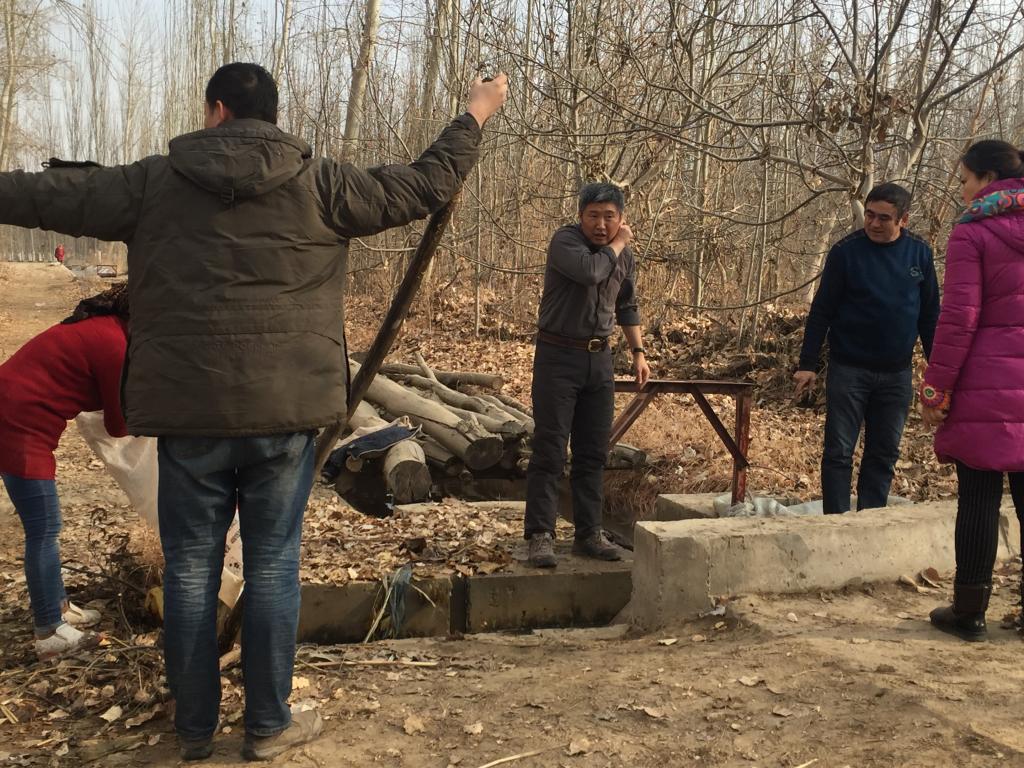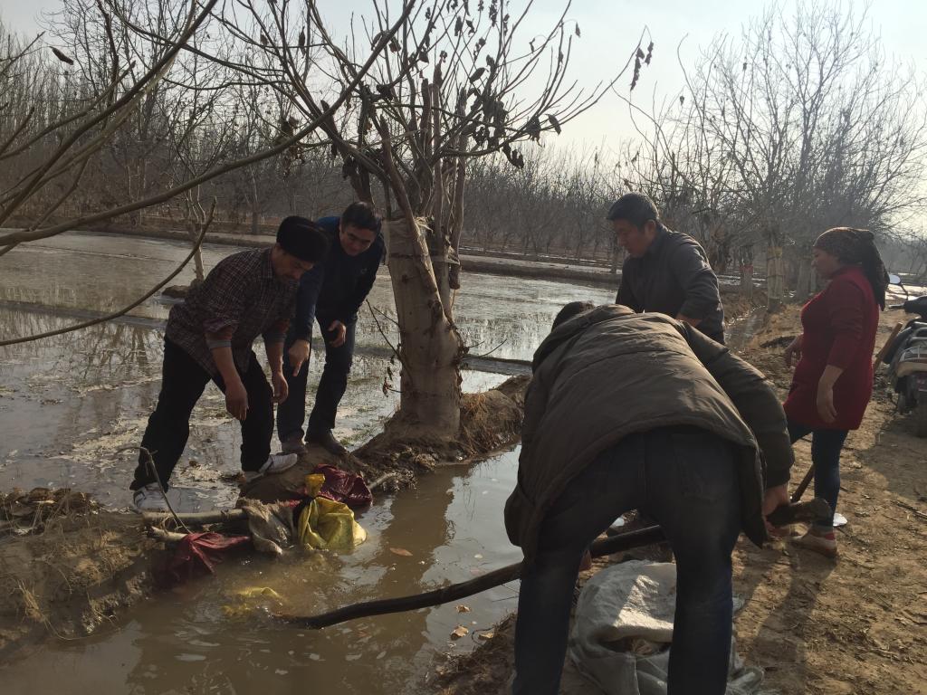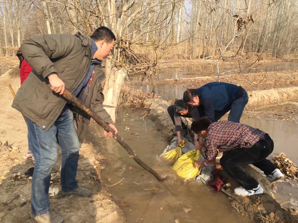 结亲干部们刚松了口气准备休息一下。忽然水渠里的水流量激增漫出了水渠,漫过了田堤,把小路都淹了。大家赶紧趟着水,把手伸进冰冷刺骨的水中,抽掉木板和沙袋,把堵住的地方挖开。当天,户外温度只有零下8度,但结亲干部们却累得满头大汗,把外衣都脱了。折腾了近两个小时,田地终于浇好了,而此时,大家的鞋子都湿了,手上、衣服、裤子和鞋子上都沾满了泥巴。艾则孜动情地说:“真是太谢谢你们了,要不是你们,今天我一个人还不知道要怎么办呢!真没有想到,你们这些医科大学的老师们竟然还能帮我干这些事情。”