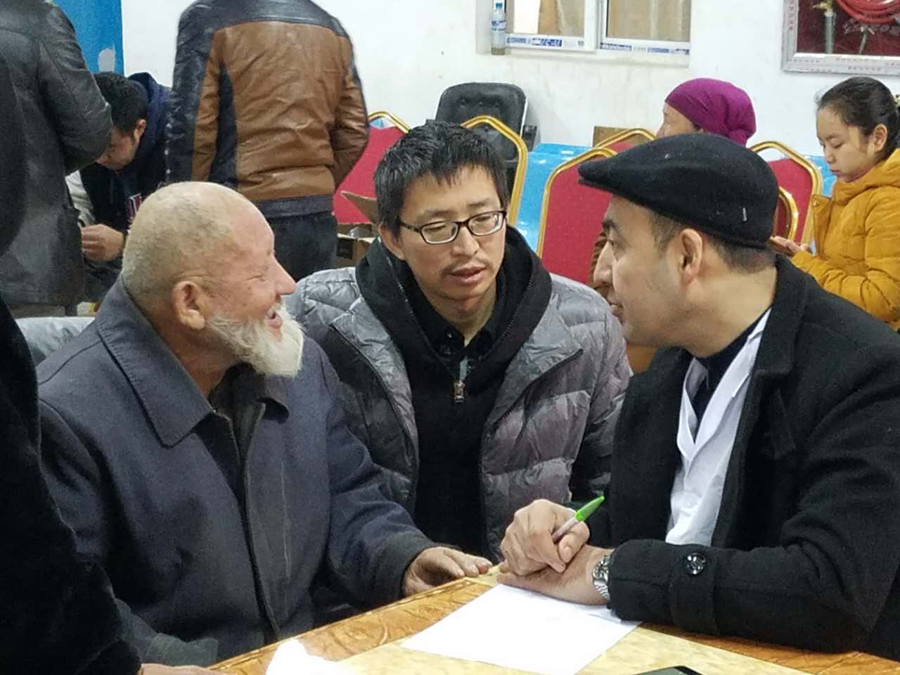 听说新医大一附院同来结亲的同事要在村委会举办义诊,前一晚,结亲干部临床医学研究院段明军就和自己78岁的亲戚斯迪克•艾斯热提大爷商量好,第二天一早接他去村委会看病。斯迪克大爷一只眼睛患有白内障,另一只眼睛也已经基本看不清东西,加上身患高血压,腿脚行动也不是很方便,所以段明军就是带着迪克大爷去看病的。