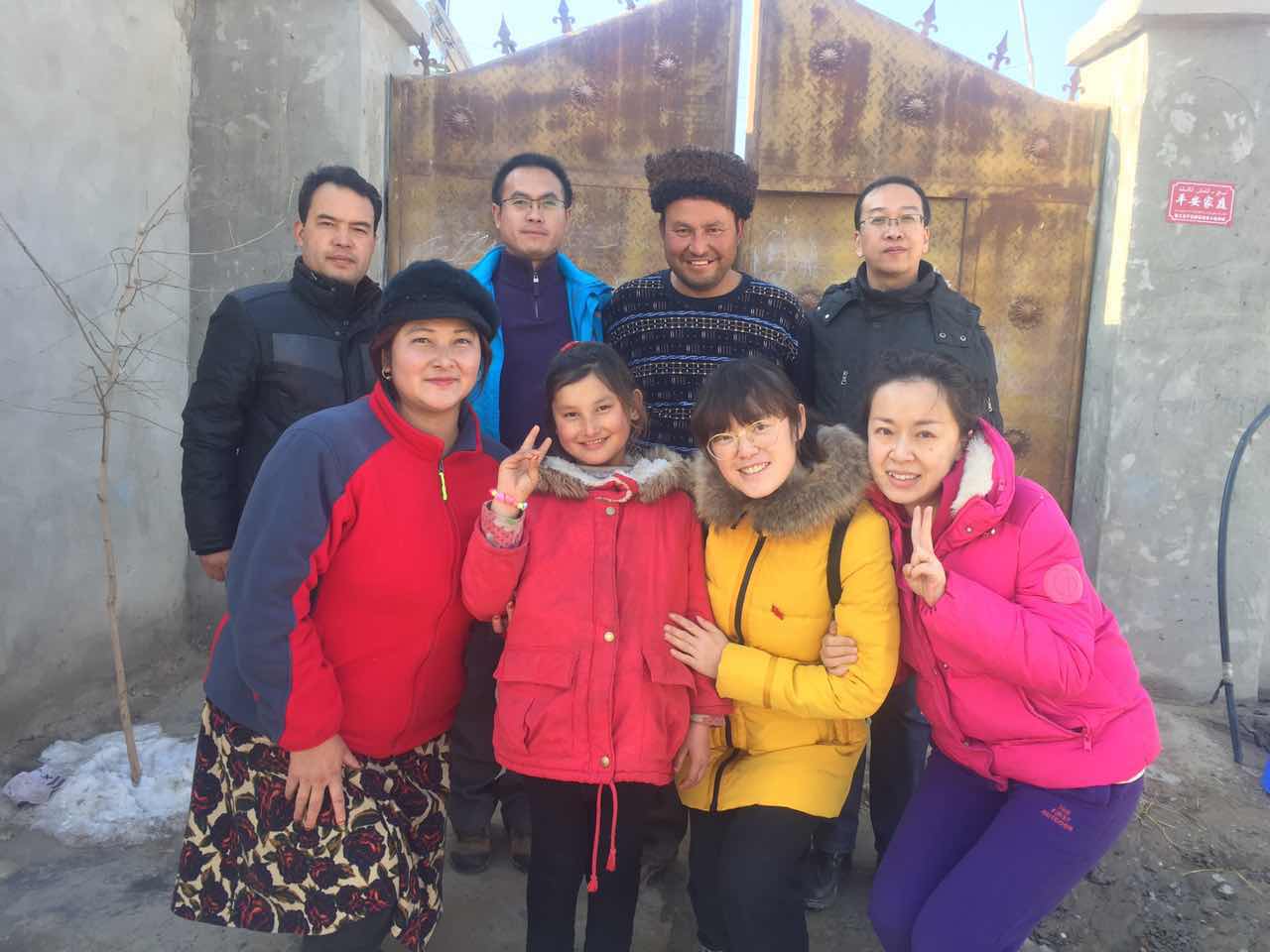 迎着明媚的阳光,beat365在线唯一官网的结亲干部语言文化学院阿里木江、体育部祝丰、计财处李玲、教务处张文红和魏东,来到祝丰老师的亲戚艾则孜·阿不都热西提的家。刚走到大门口,迎面碰到艾则孜急匆匆地要出门,看到我们来了。他立刻把大家请进屋里,面露歉意地对我们说:“你们先在家里稍坐一会儿,喝些热茶。我现在要去给地里的冬麦浇些水,去去就回!”说着,就要往外走。一听这话,结亲干部们立即把行李一放,拉着艾则孜的说:“我们大家一起去吧,人多力量大,一会儿就能浇完了!”。说着,结亲干部们不顾亲戚的反对,执意拉着艾则孜往他的地里走去。
