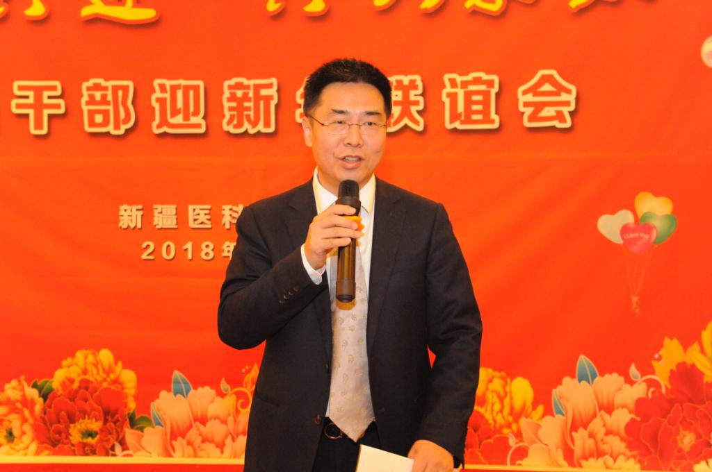 高书记代表校党委向各位援疆干部远离家乡、远离亲人,来到beat365在线唯一官网和各附属医院,无私奉献、努力工作、付出巨大牺牲,表示衷心的感谢和亲切的慰问。2017年在自治区党委和政府的坚强领导下,校党委坚决贯彻以习近平同志为核心的党中央确定的治疆方略,聚焦总目标、落实总目标,在各个方面都取得了重大胜利。尤其是在坚持党的领导和社会主义办学方向,努力提升人才培养能力,加强意识形态领域党的主导权,取得了压倒性的胜利。学校各项事业和改革发展突飞猛进,无论是教学、科研还是人事分配制度改革,学科和专业建设都取得了可喜成绩。以姚文兵副校长为领队的第九批援疆干部人才素质强、热情高,按照校党委的部署,在各自分管领域励精图治,取得了一系列重大突破。姚文兵副校长近几个月多次往返于新疆和内地,广泛联系,争取多方帮助,近日健康管理与服务专业、基础医学、精神医学、麻醉学、卫生检验检疫学等5个新增专业顺利获得教育部批准。在积极争取马依彤教授心脏中心教师团队获批教育部首批全国高校黄大年式教师团队中也做出了积极贡献。各受援单位对援疆干部人才的肯定让校党委深受感动。这是大家在beat365在线唯一官网度过的第一个元旦,迎接的第一个新年,对大家来说也别有一番意义。值此新年来临之际,高书记真诚祝福大家工作顺利、身体健康,并通过大家向援疆干部的亲人、同事、朋友们致以新年的祝福。